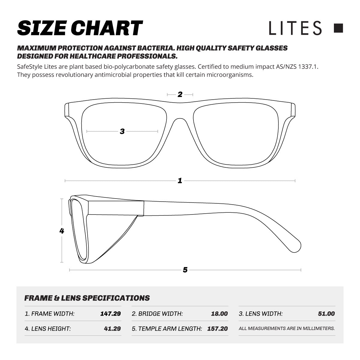 Keep safe in style with the SafeStyle Lites - Square. This protective eyewear is designed specifically for our healthcare heroes. Certified to medium impact AS/NZS 1337.1 standards, this is the perfect blend of protection & comfort that you deserve.